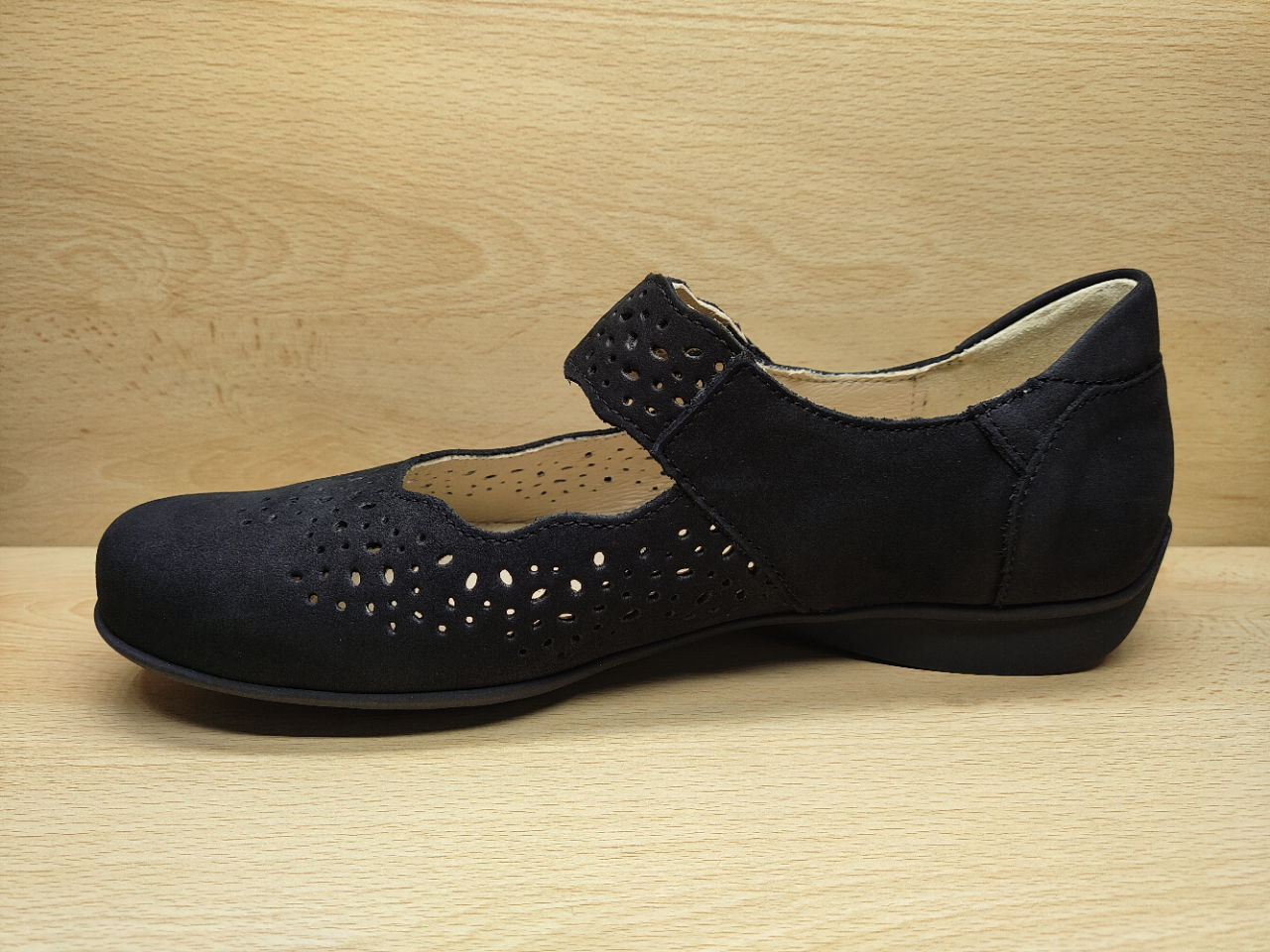 📌 ✔ Couleur : Noir ✔ Matière : Cuir Nubuck perforé ✔ Doublure : Cuir ✔ Largeur Confort. Convient aux pieds larges à très larges avec besoin d’aisance. ✔ Cambrure 20 mm. Talon compensé. ✔ Semelle...